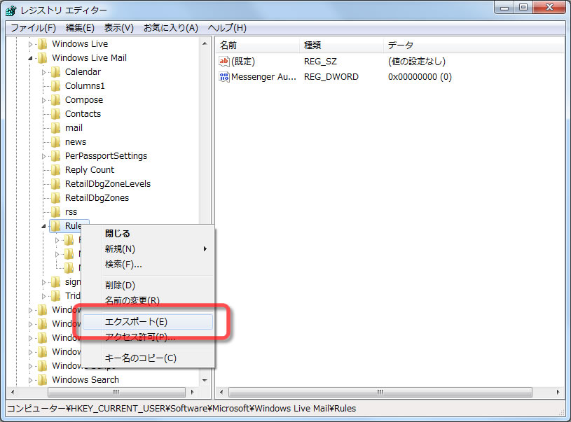 Windows Liveメールのバックアップと復元 エクスポート・インポート
