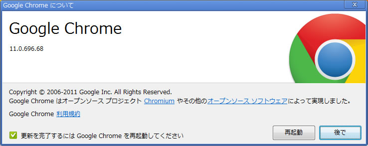 『Google Chromeを更新』を開くと、再起動するように促されます。