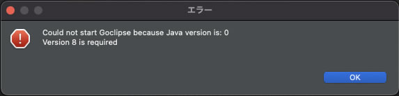 Java のバージョンが 0 であるため、Goclipse を起動できませんでした