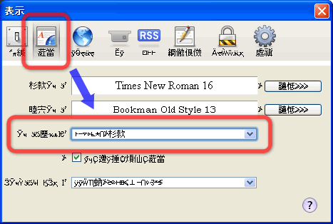 文字化けしてよくわからない状態ですが、右から2つ目のメニューの中の上から3つ目の選択項目を変更します。