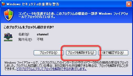 Stunnelを実行するとWindowsセキュリティの重要な警告で