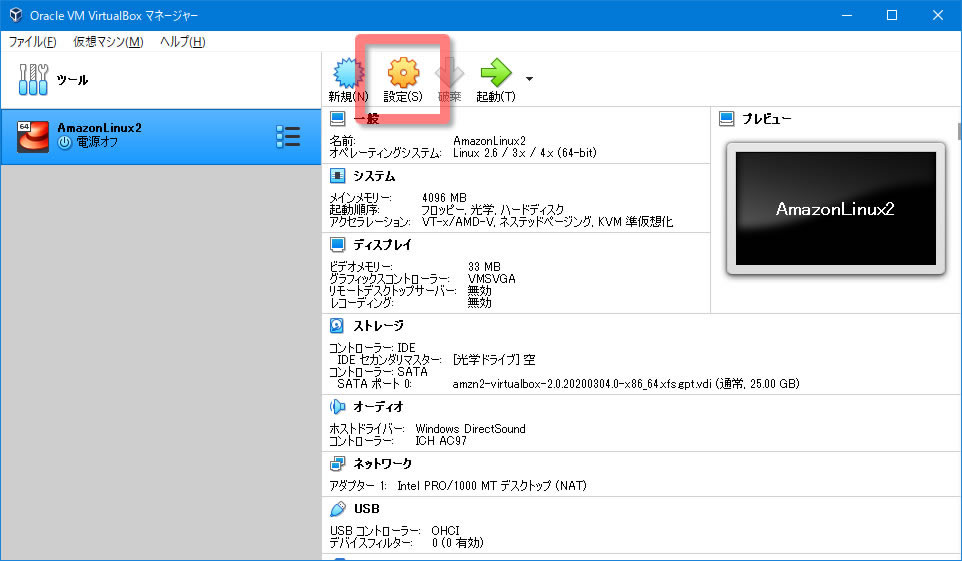 Amazon Linux2をローカルのVirtualBoxで起動する方法