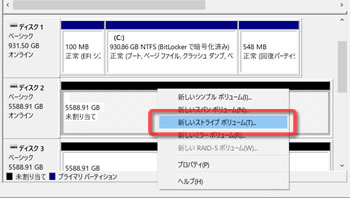 WindowsでソフトウエアRAIDを組む方法(ストライプボリューム ミラーボリューム RAID5)