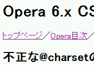 本来、@charset宣言が正しくない記述の場合はその部分のみを無視することになっている。しかしOperaでは不正な記述のあるスタイルシート全体が無視されてしまう。