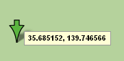 緑色の矢印が出るので、マウスをあわせると緯度経度が表示されます。